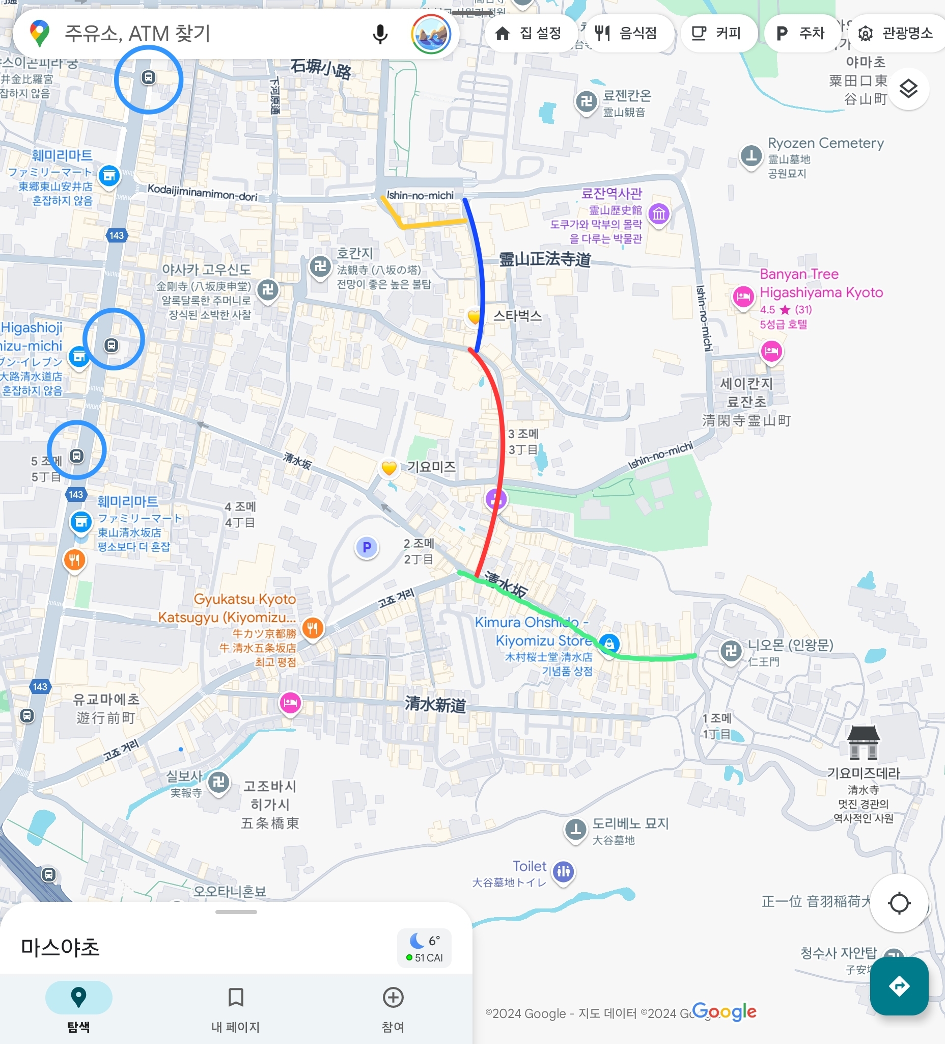 구글 지도를 보고 가시면 기요미즈미치에서 대부분 내리실 거에요