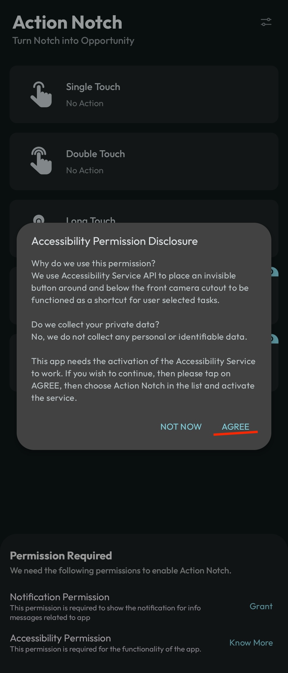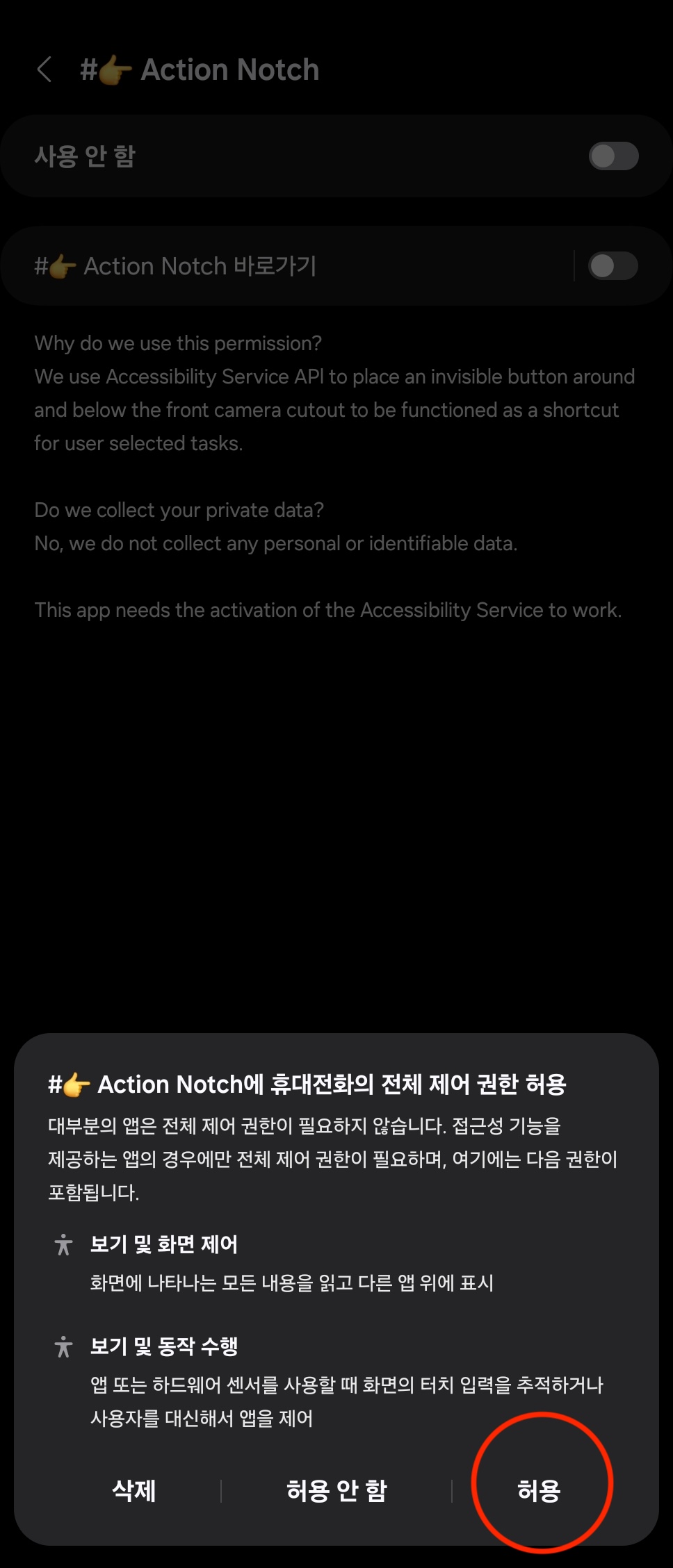 이름 그대로 노치를 누르면 액션 즉, 무언가 해주겠다는 앱이에요