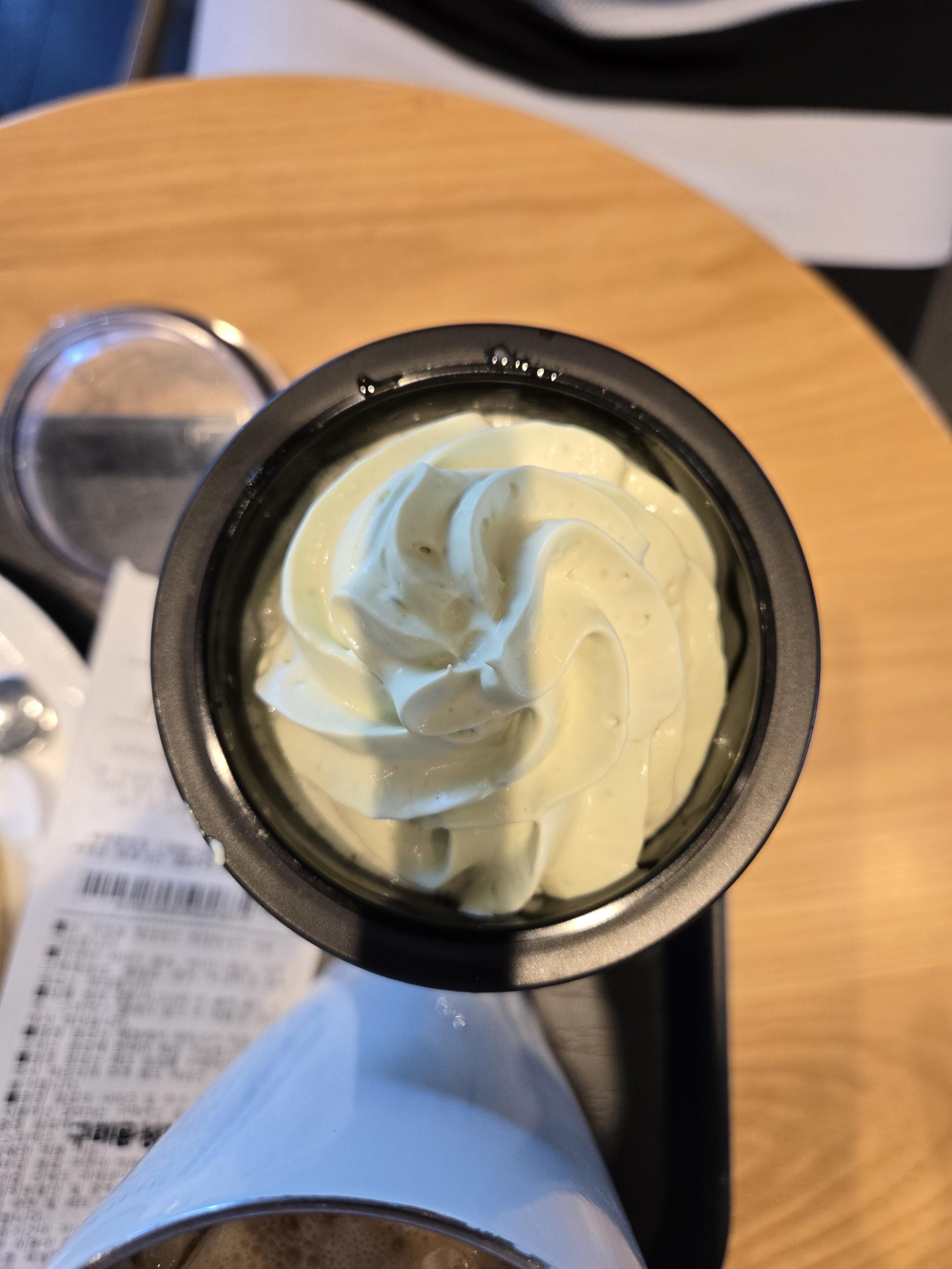 초록색 휘핑크림이 기대감을 키우네여